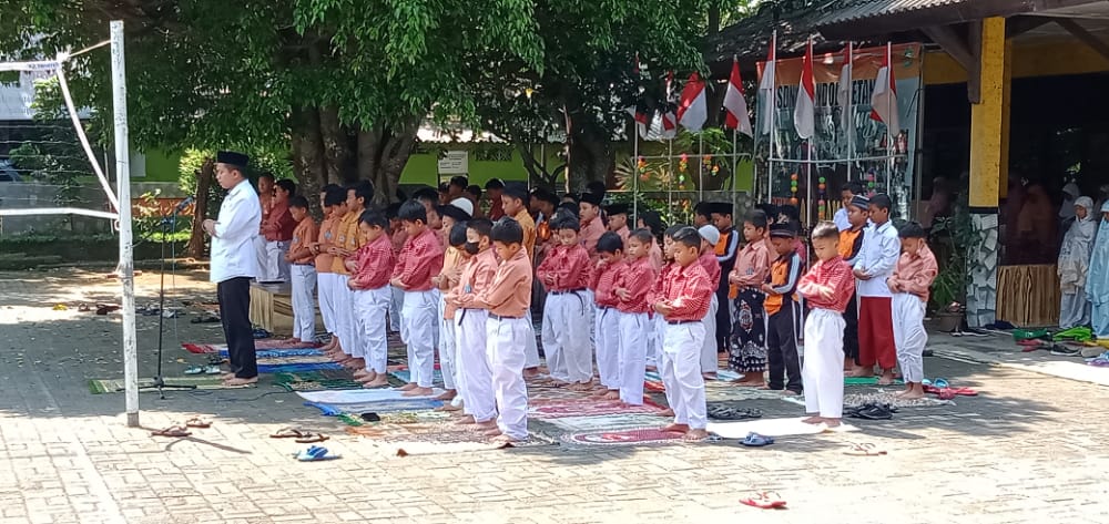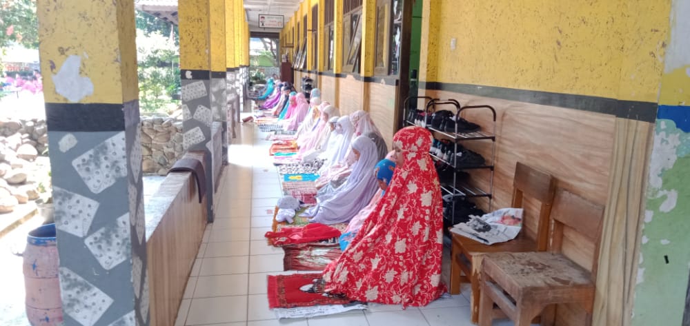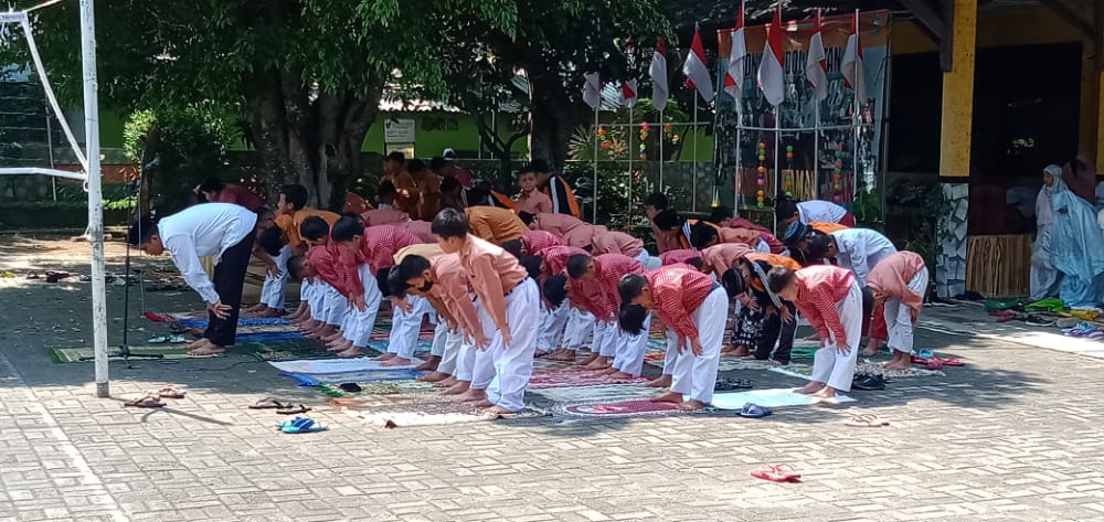 Sementara Solat Dzuhur berjamaah dilaksanakan di lapangan, dibawah pohon rindang, karena mushola sekolah sedang dipakai tukang untuk tempat tinggal karena sedang dilakukan renovasi gedung C (ruang kelas 1-3). Walau sholat dibawah pohon, namun tidak mengurangi kekhusukan anak-anak maupun guru dalam beribadah kepada Allah SWT. Yang mengumandangkan adzan dan iqomah adalah siswa lelaki secara bergantian.